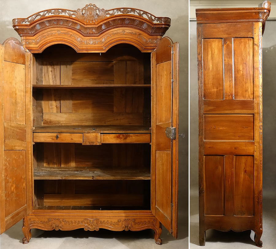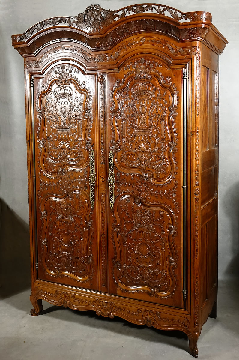 "Voici la magnifique armoire placée bien en vue, face à la fenêtre. La lumière qui joue sur les ciselures de ses panneaux lui donne des reflets d'une richesse infinie. Les fiancés voulurent qu'elle fût la plus belle du village; elle fit leur orgueil comme elle fait aujourd'hui la fierté de ceux qui la possèdent." Les beaux meubles rustiques du vieux pays de Rennes - Dr. Jambon |