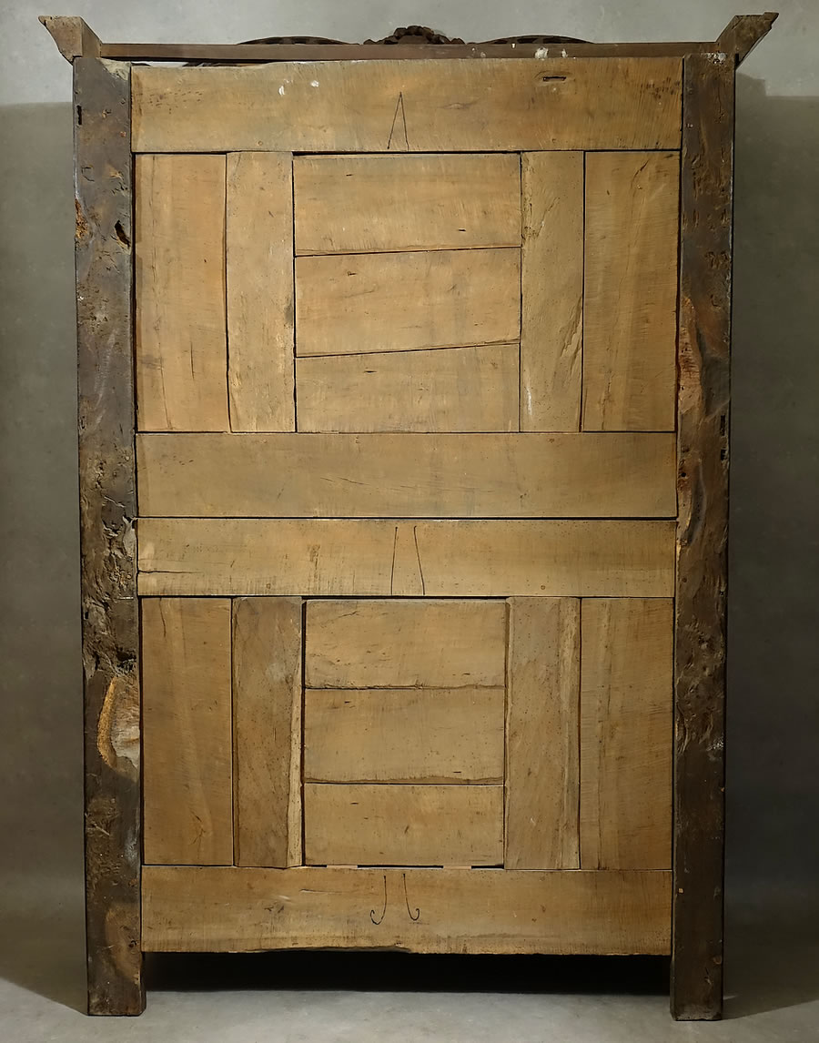 Le dos de l'armoire : montants en châtaignier et dos en poirier. |