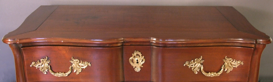 tiroirs : La façade en arbalète, les montants à ressaut galbés