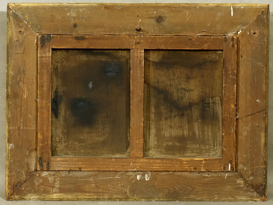 Dimensions : toile 55 cm x 38 cm - cadre 73,5 cm x 55,5 cm.