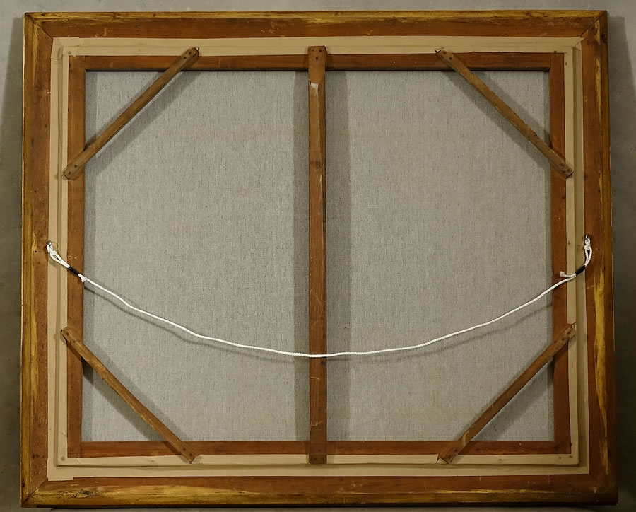 État : Œuvre et cadre en excellent état. Tableau rentoilé (suite à une ancienne déchirure de la toile avec réintégrations au sommet et à gauche de la colonne centrale), nettoyé et reverni par notre restaurateur.