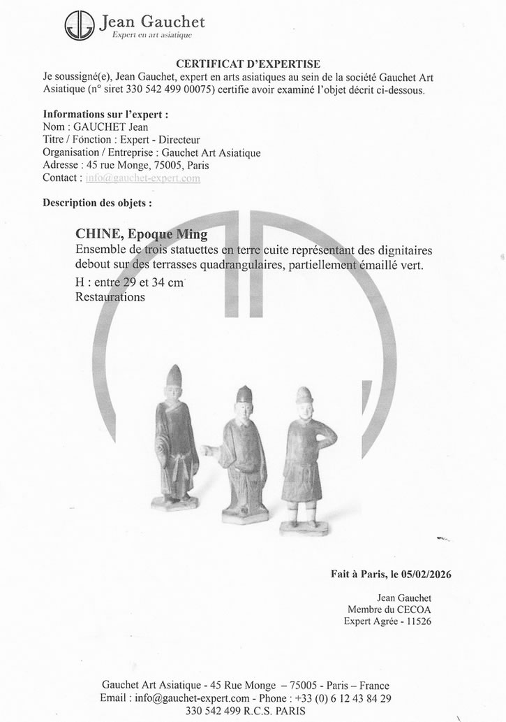 Vendues avec certificat du cabinet Gauchet, expert en Art asiatique à Paris.